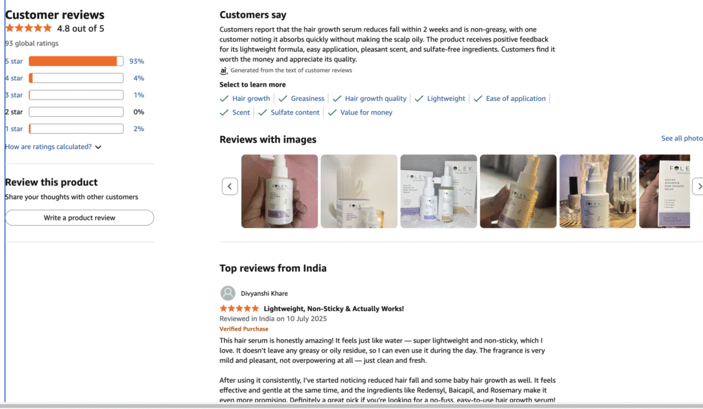 👉 Foley’s Edge: Our serum combines clinically validated actives with nourishing botanicals, designed specifically for Indian hair concerns like humidity, pollution, and stress.
