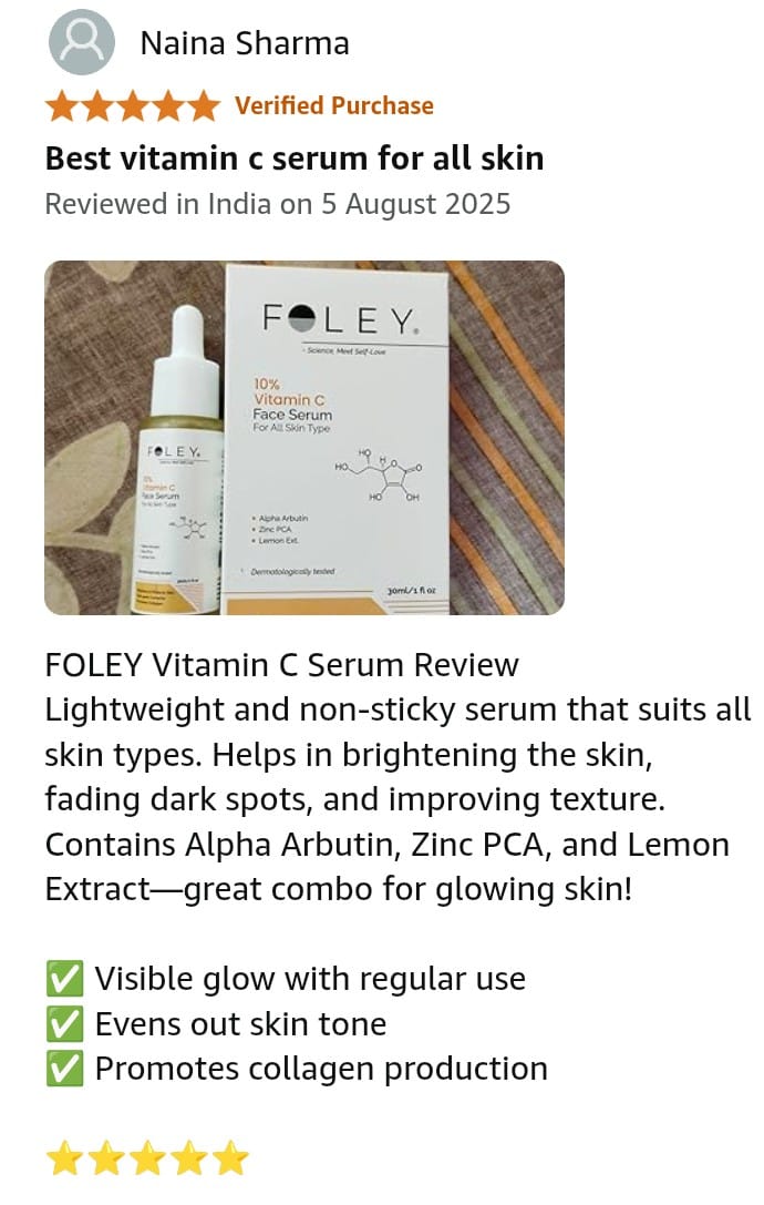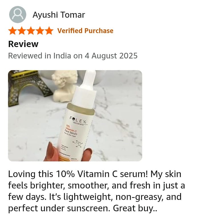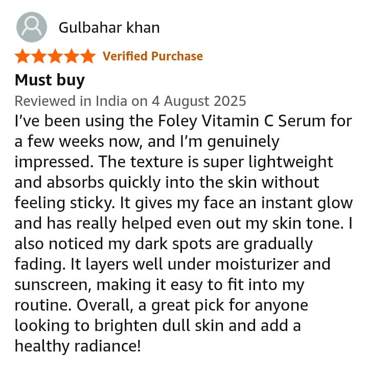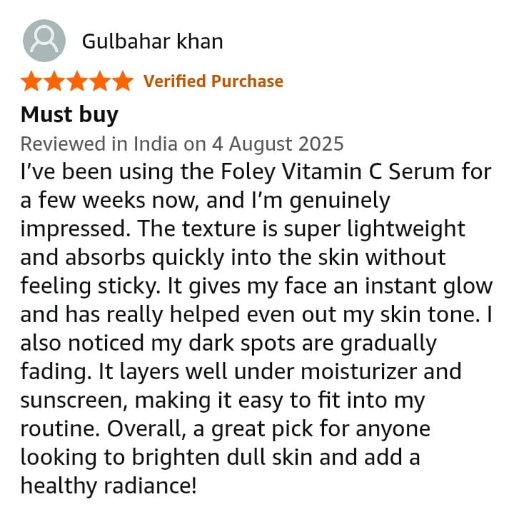 Foley’s Vitamin C 10% Serum is dermatologist-tested and formulated without parabens, sulfates, silicones, mineral oils, or added fragrance.