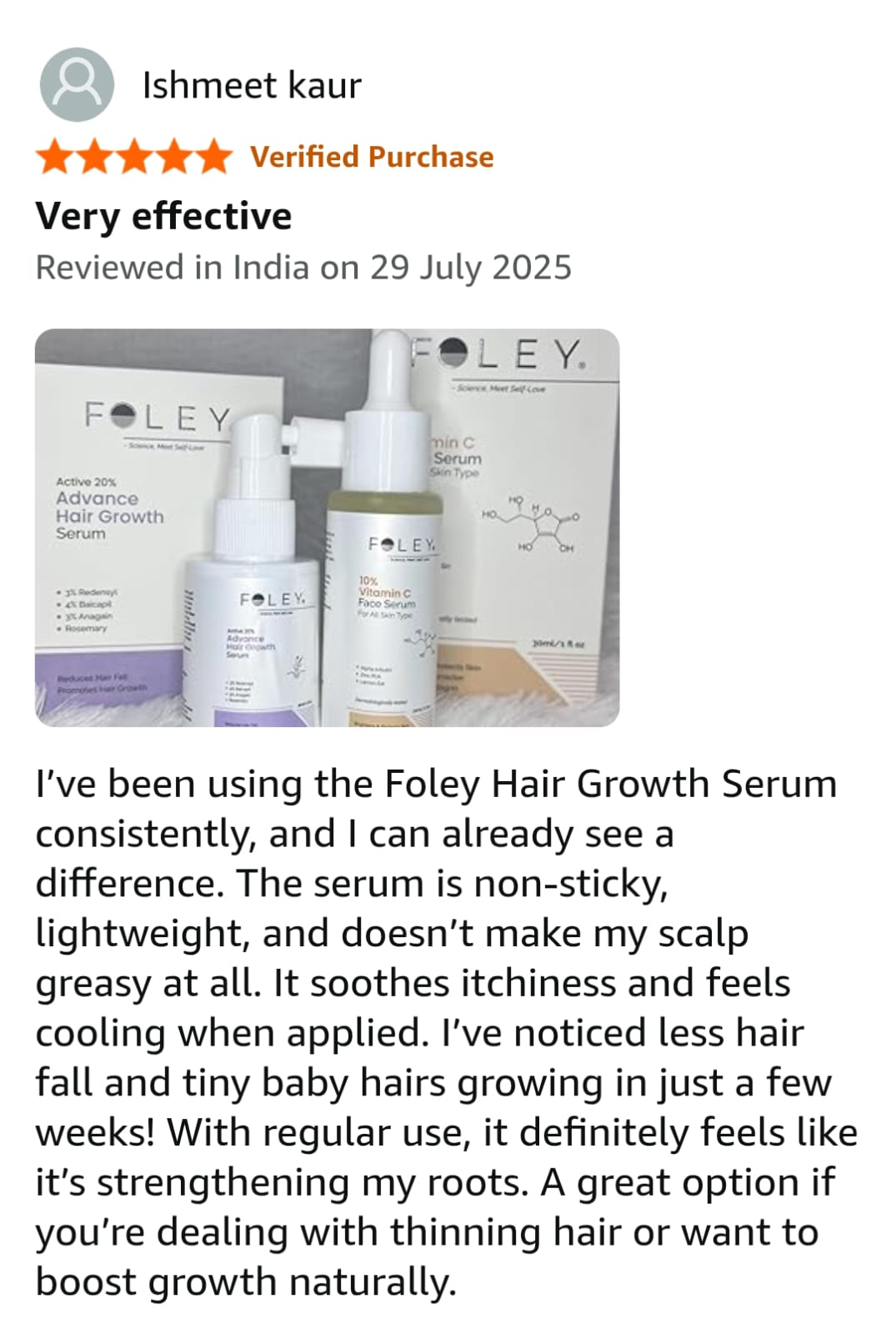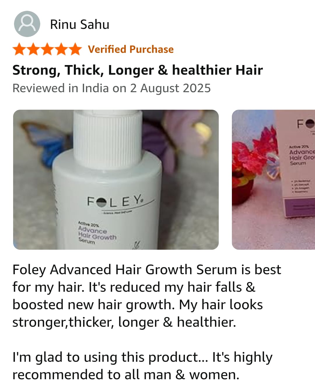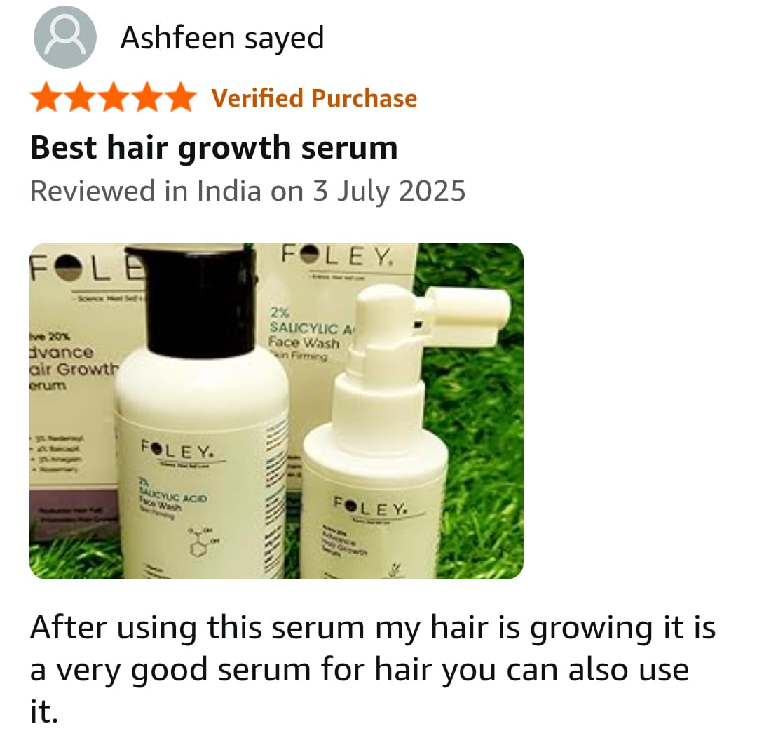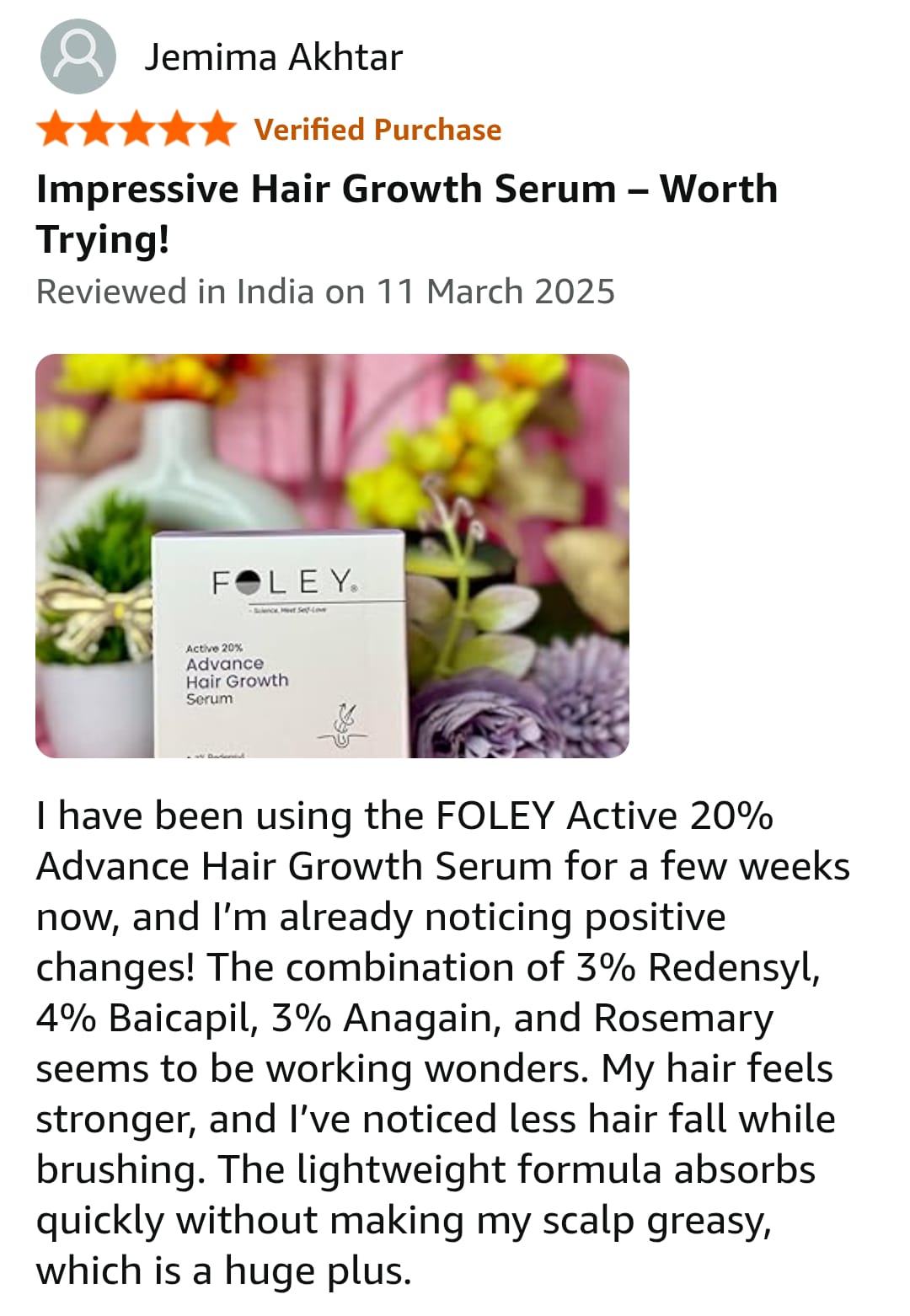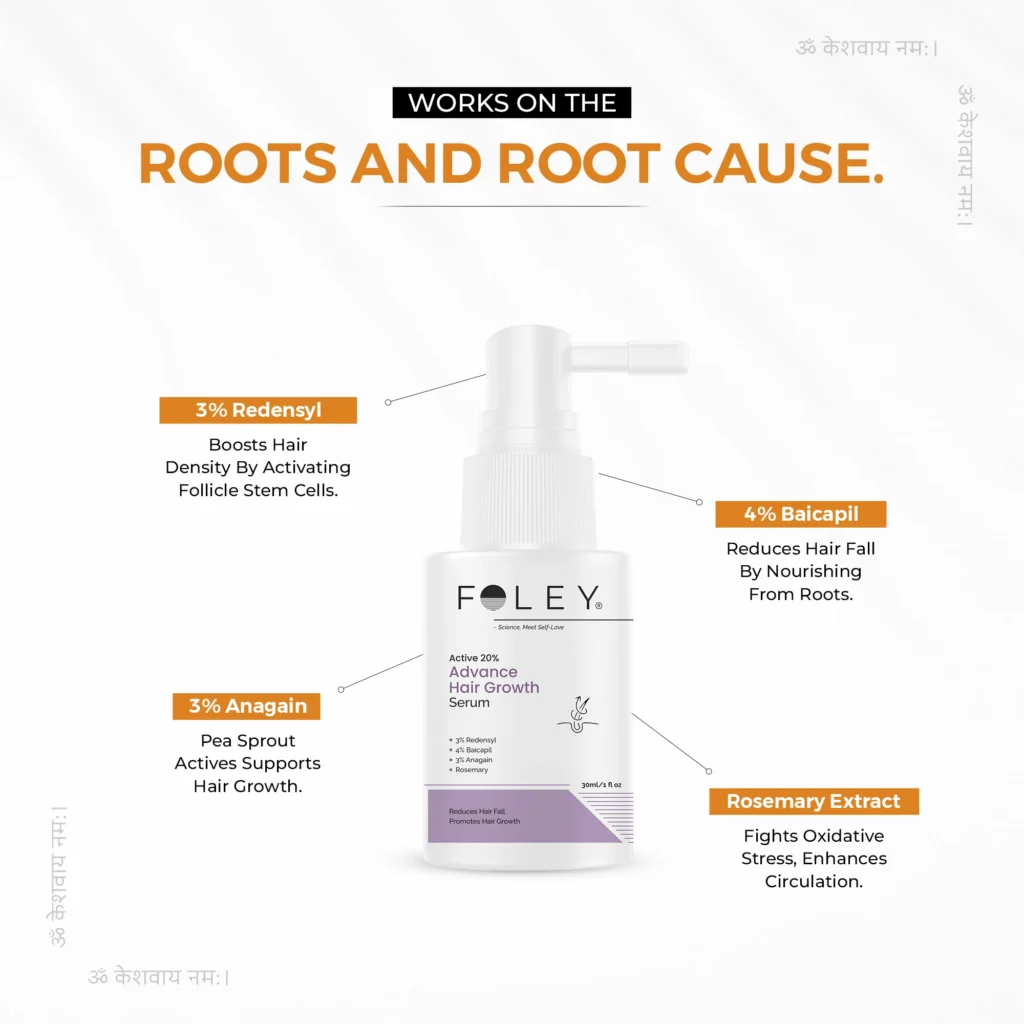 Foley Hair Growth 20% Serum features a powerful blend of globally recognized hair actives backed by clinical studies.