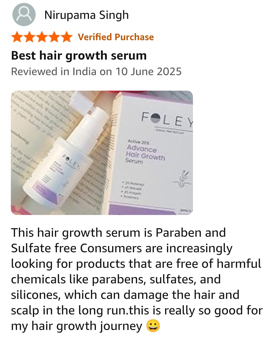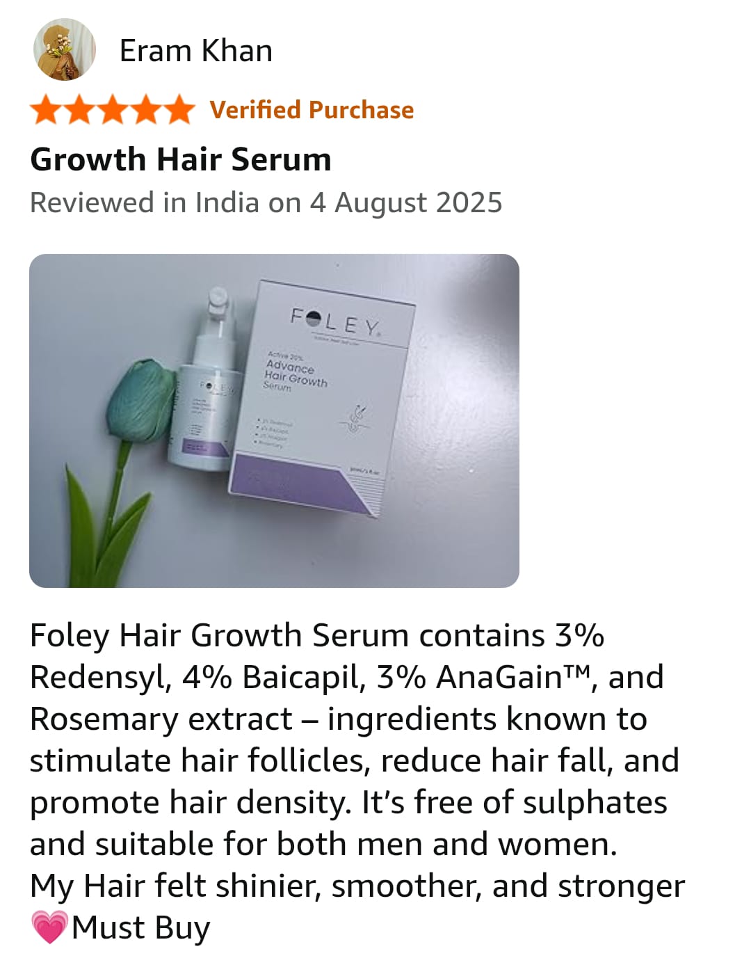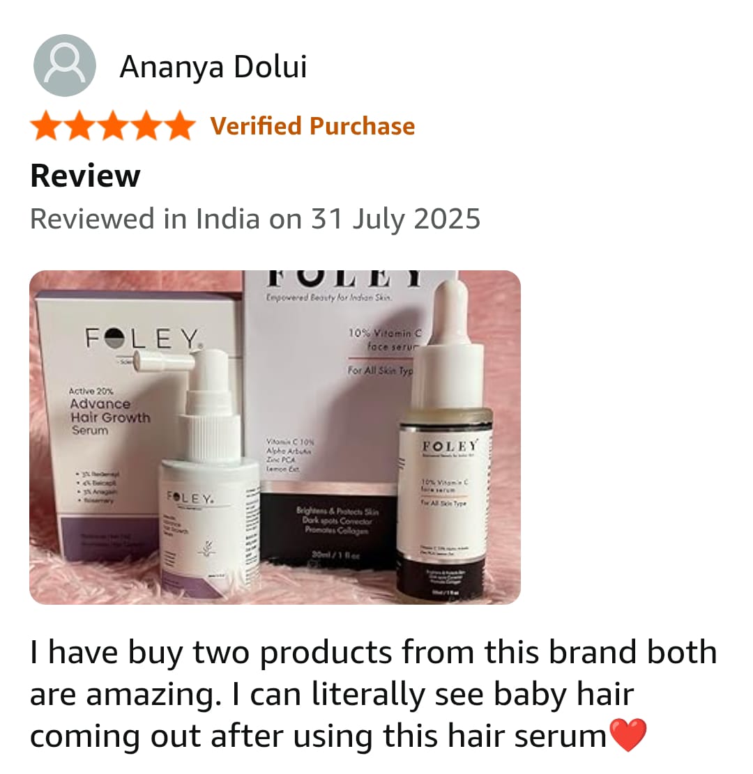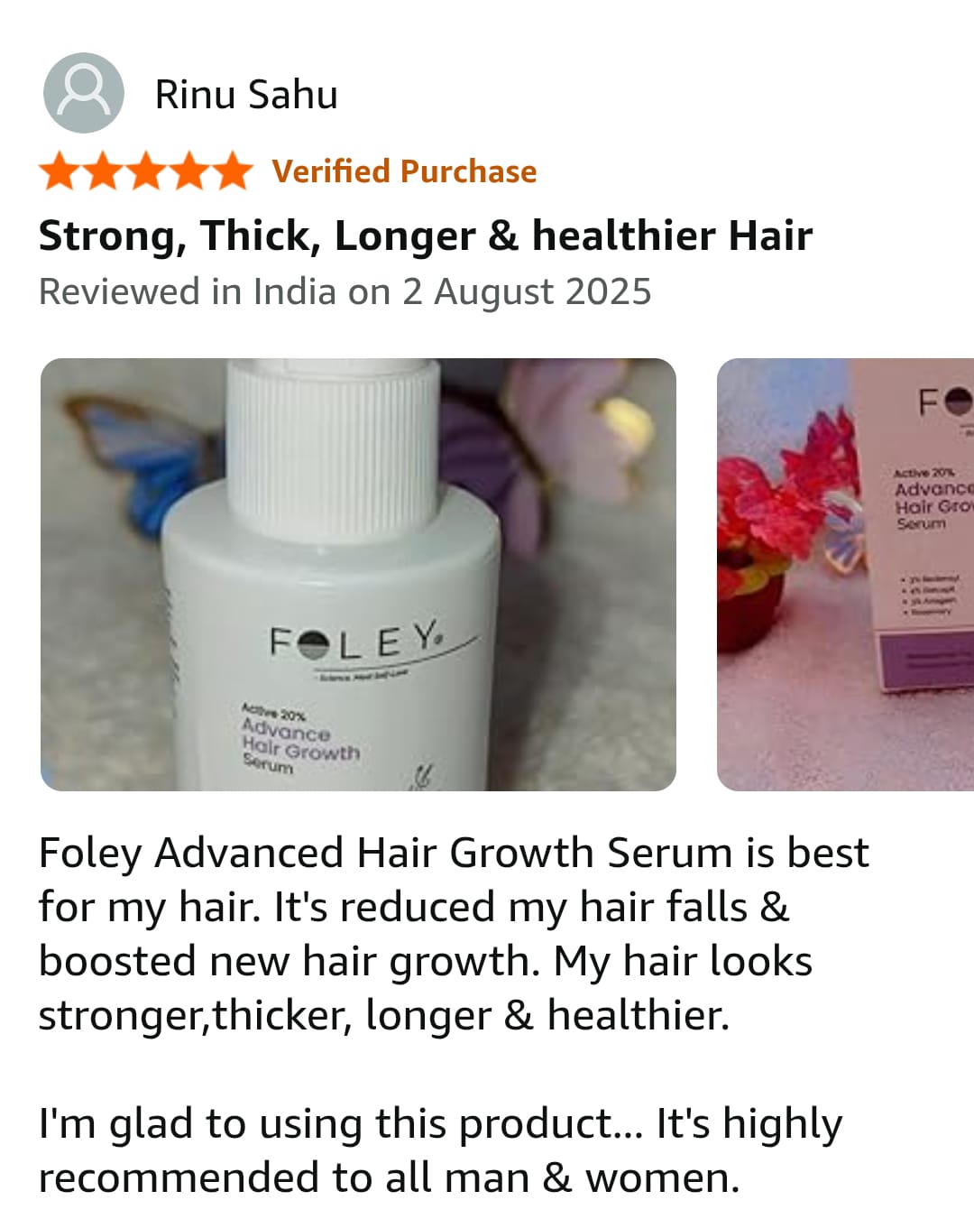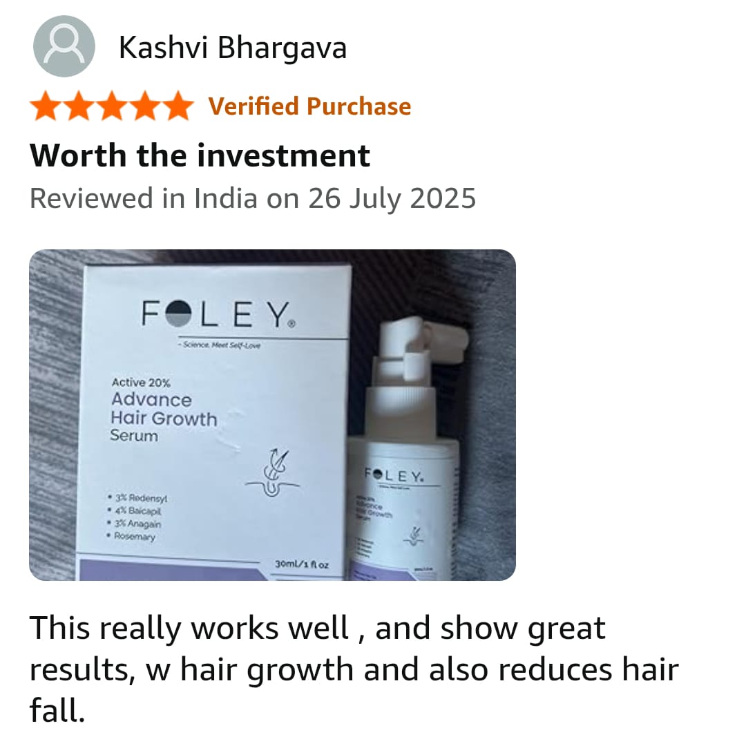 Foley Hair Growth 20% Serum features a powerful blend of globally recognized hair actives backed by clinical studies.