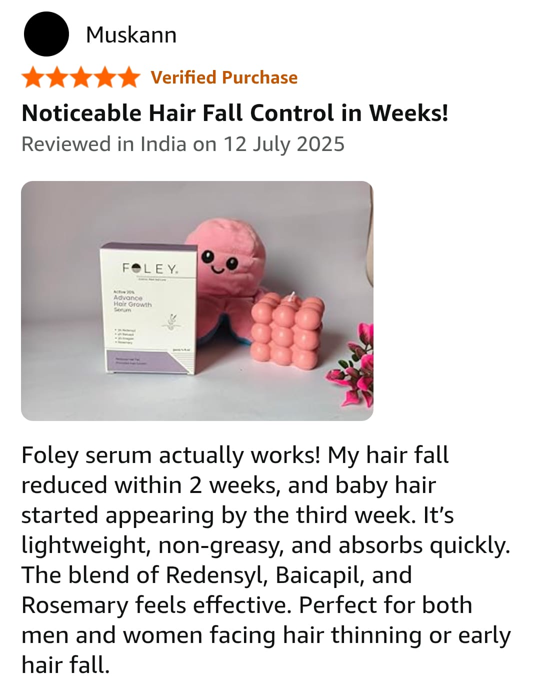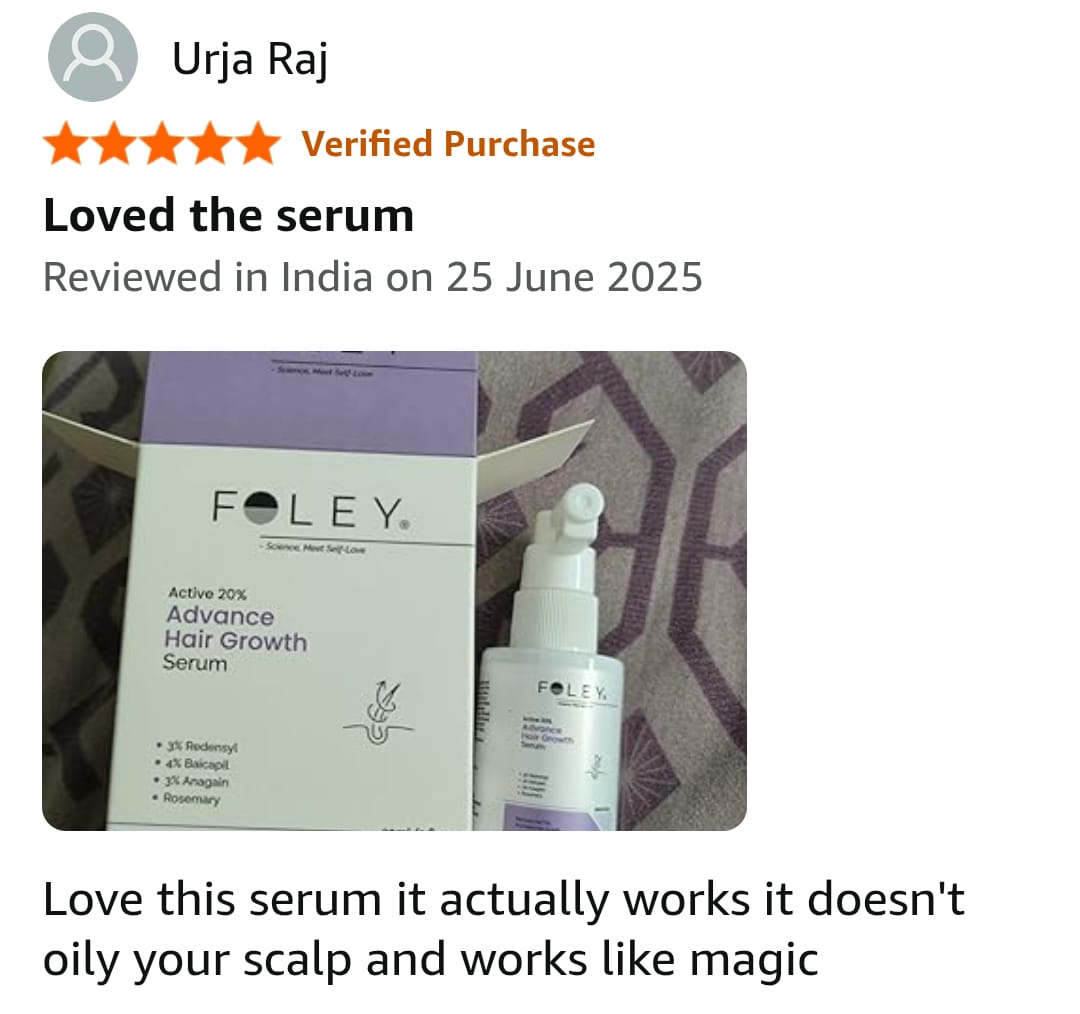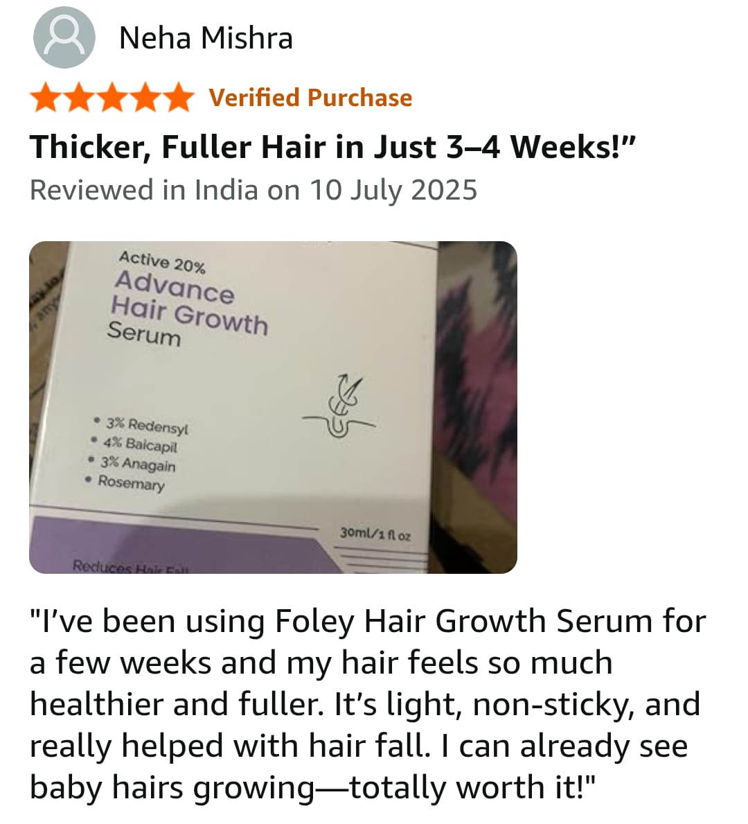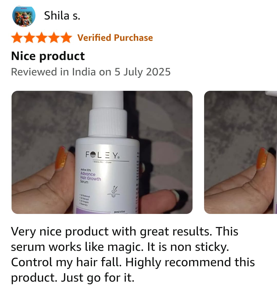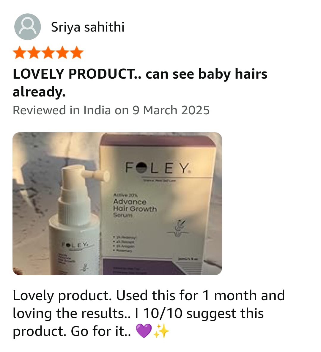 Foley Hair Growth 20% Serum features a powerful blend of globally recognized hair actives backed by clinical studies.
