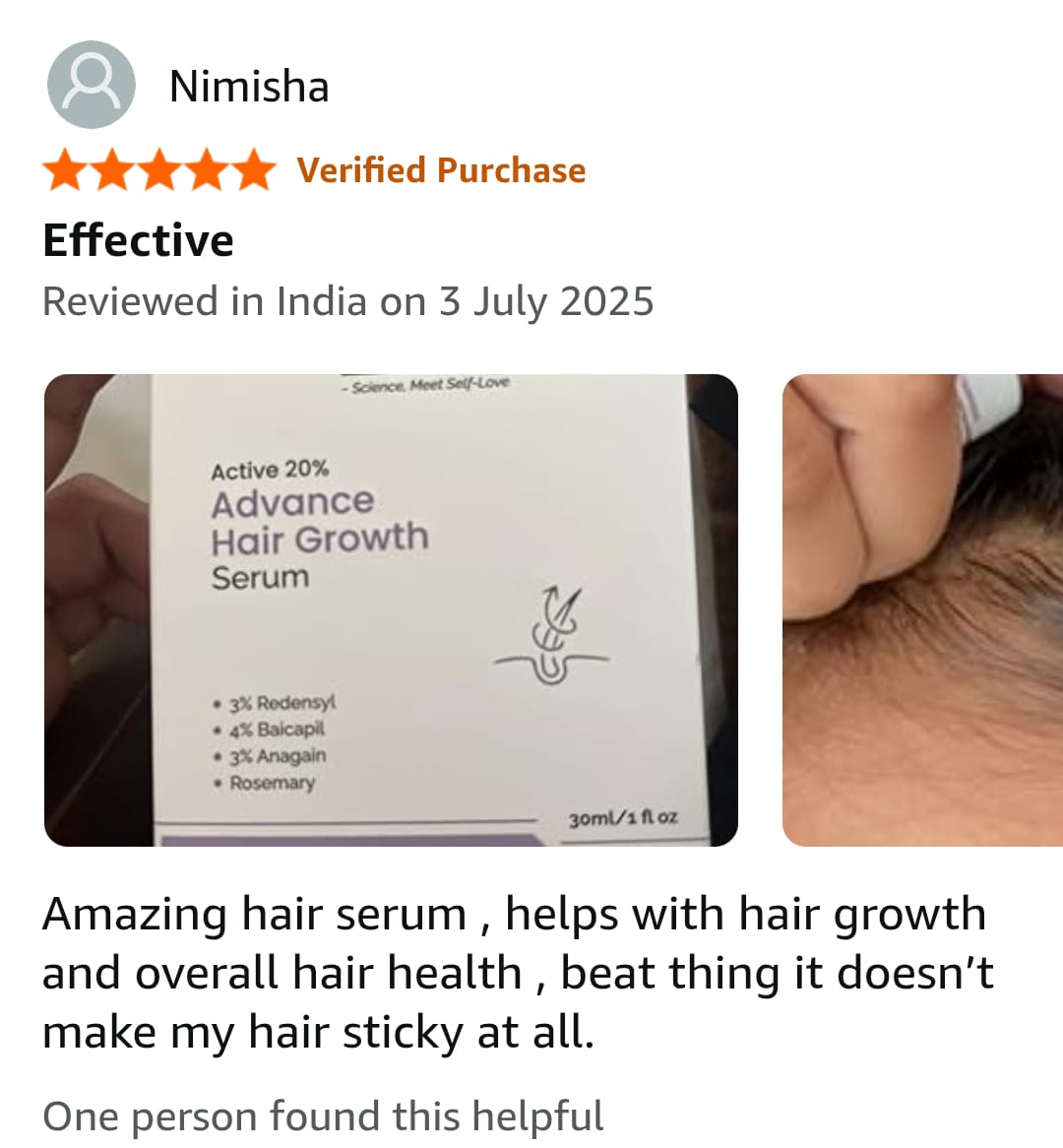 Powered by a 20% Active Complex, this serum blends 3% Redensyl, 4% Baicapil, and 3% Anagain—three clinically proven actives known to boost hair density, reduce hair fall, and stimulate dormant follicles.